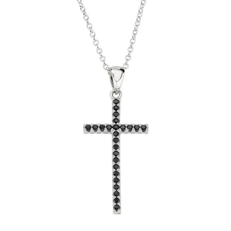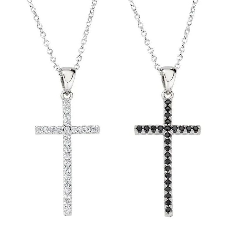 - Doppelseitiger Kreuzanhänger mit weißen und schwarzen Zirkonia