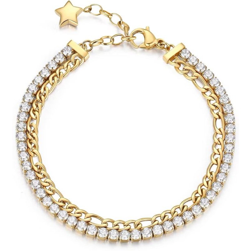 Bracciale Donna Brosway Desideri BEI046, Referenza: BEI046, Categoria: Gioielli Donna Brosway. Acquista Gioiello Brosway BEI046 al miglior prezzo. Bracciale tennis doppio filo in acciaio anallergico 304 con catena grumetta allungata, finitura pvd oro 14K e cubic zirconia, ciondolo a forma di stella. Bracciale Donna Brosway Desideri BEI046 è un prodotto esclusivo del marchio Brosway. La ricercatezza dei materiali che lo compongono, la cura della lavorazione e dei dettagli, il design unico e inconfondibile, fanno di questo gioiello un oggetto indispensabile per personalizzare il tuo stile. Sul nostro negozio online Crivelli Shopping trovi le collezioni Brosway in vendita a prezzi scontati e con garanzia di qualità. Sarai soddisfatto o rimborsato! Consulta ora le Caratteristiche Tecniche per conoscere i dettagli di questo articolo. Contattaci subito per ulteriori informazioni. Il prodotto è originale, autentico in tutte le sue parti, nuovo di fabbrica con etichetta e dotato di packaging della casa produttrice.| Informazioni sul prodotto | |
