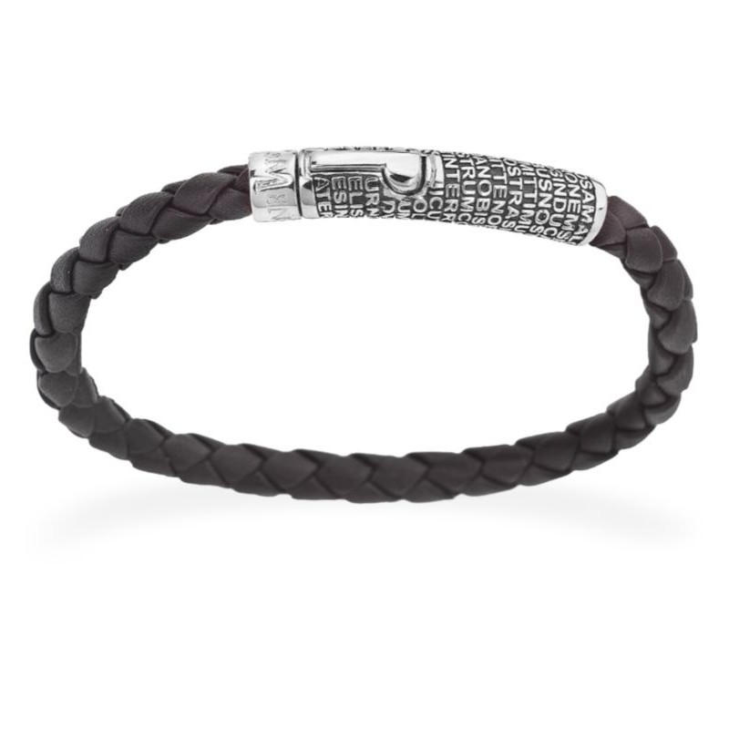 - Аксессуар, сочетающий прочность плетёной кожи с ценностью серебра, подчёркивая выгравированные слова благодаря лаконичному и современному дизайну