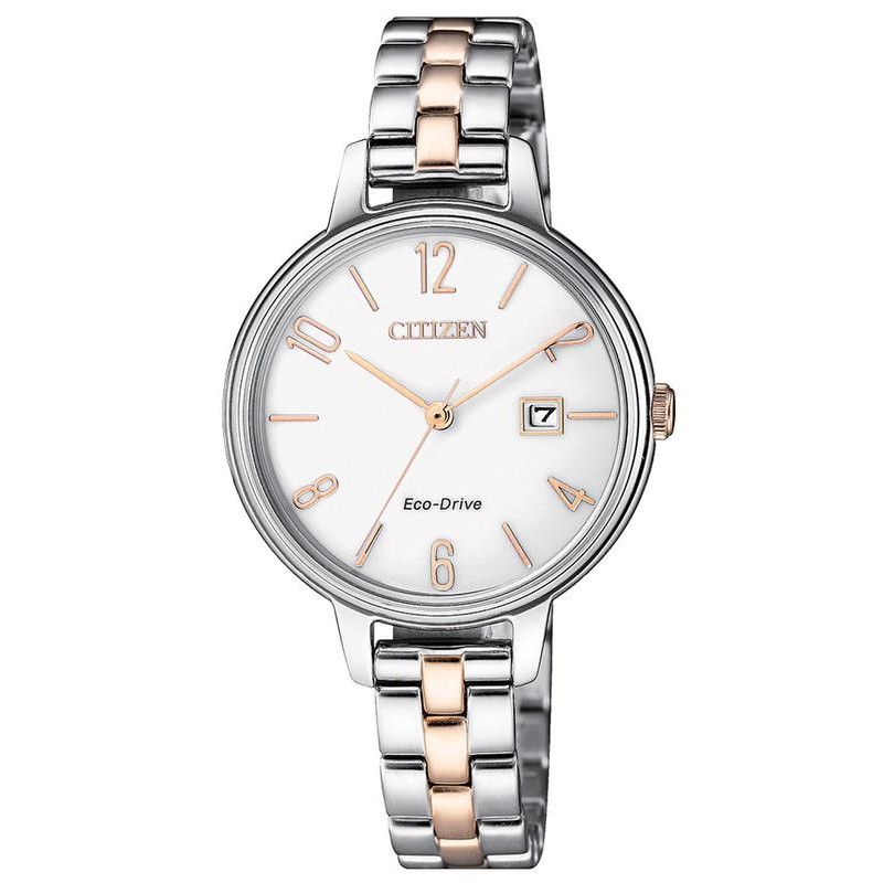 Citizen Ladies Watch Lady Eco-Drive EW2446-81A, Model number: EW2446-81A, Category: Citizen Watches. Buy Citizen Watch EW2446-81A at special price. Brand: Citizen; Collection: Citizen Lady; Product code: EW2446-81A; Type of article: Watch; Gender: Lady; Functions: Just Time, Date; Type of Movement / Mechanism: Eco-Drive; Case Shape: Round; Case Material: Stainless Steel; Case Color: Steel; Case Diameter Ø: 31 mm; Type of Dial: Analog; Color of the Dial: White; Strap Material: Two-Tone Steel; Strap Color: Steel and Rose Gold; Water Resistance: 50 meters / 5 bar. Citizen Ladies Watch Lady Eco-Drive EW2446-81A is a Citizen product. On our online store Crivelli Shopping you can find the Citizen collections for sale at special prices and with guaranteed quality. Check out the Specifications now to learn more about this product. Contact us now for more information. This product is genuine, authentic in all its parts, new with label and with original packaging.| Product Information | |