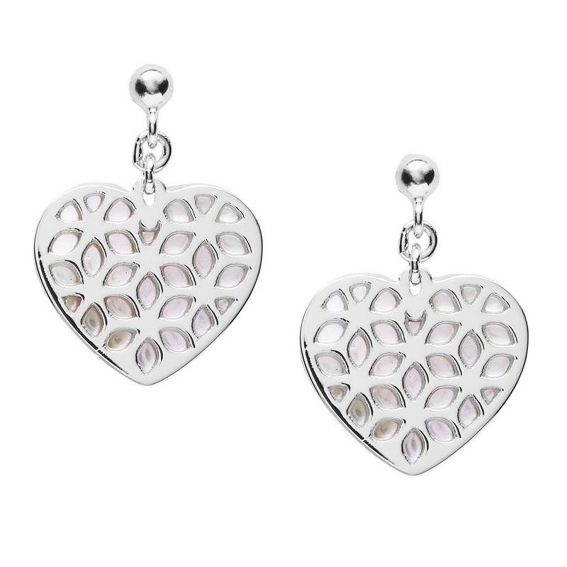 Fossil Ladies Earrings Sterling Silver JFS00489040 Heart Mother of Pearl - Buy Fossil Jewels Online